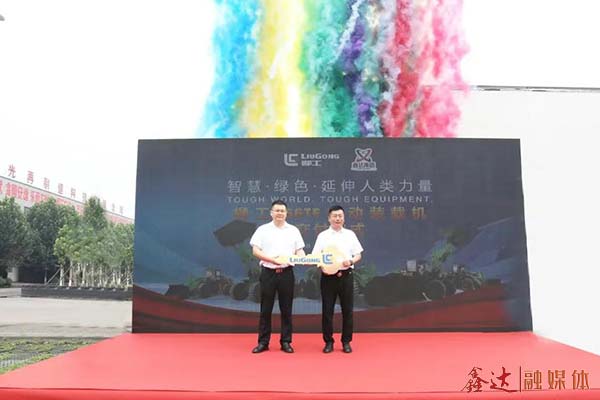 ▲柳工集團向遷安鑫達物流有限公司遞交鑰匙,標志著61臺電動裝載機全部入列運營